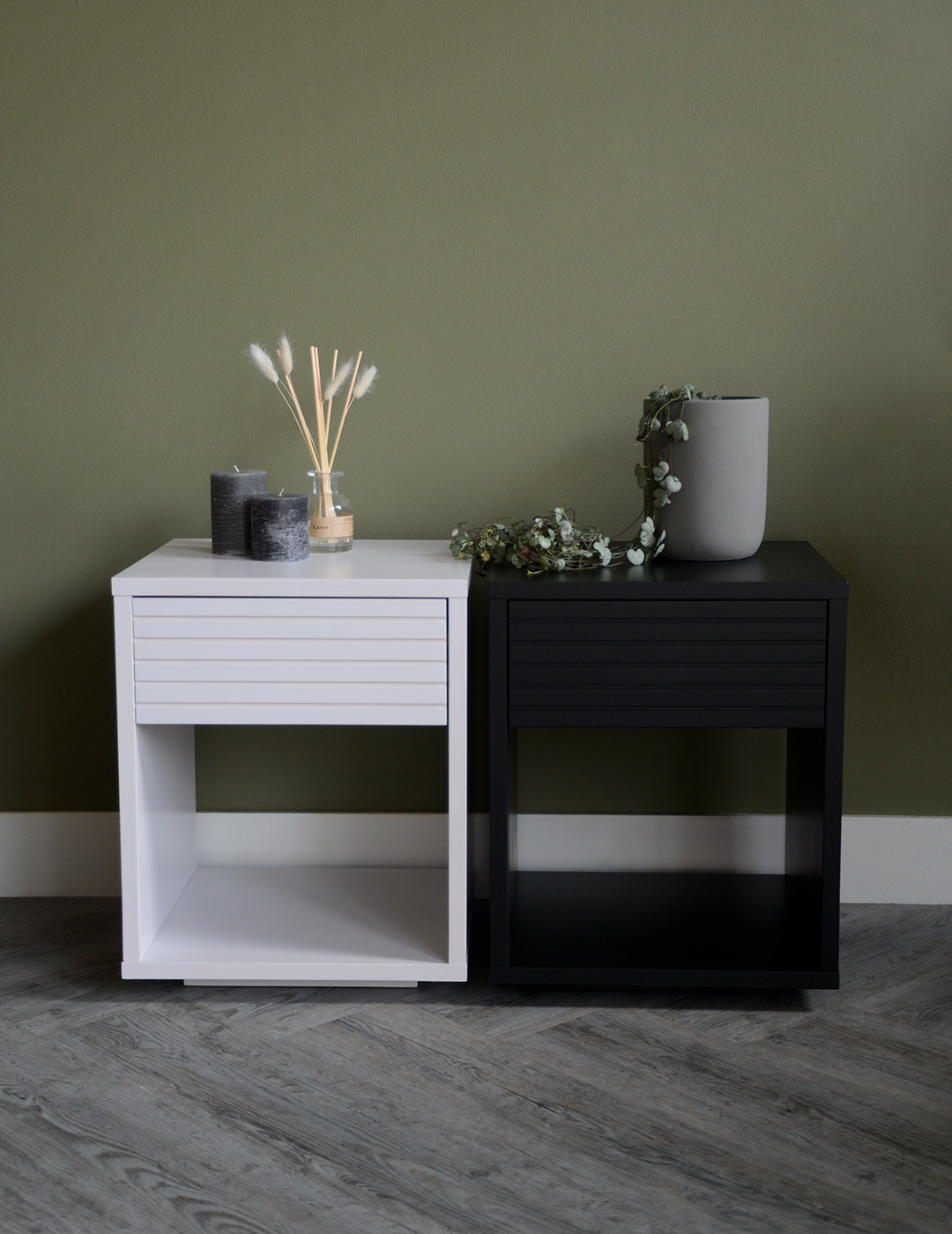 Inspired by Scandinavian design, this compact, stylish unit is the perfect partner for your bedside. Featuring a generous upper drawer, ideal for books and nighttime essentials, and a lower shelf for storing slippers and blankets. This modern bedside table boasts a stylish groove design to the front of the drawer panel. Made using solid birch, available in either a white or black finish.