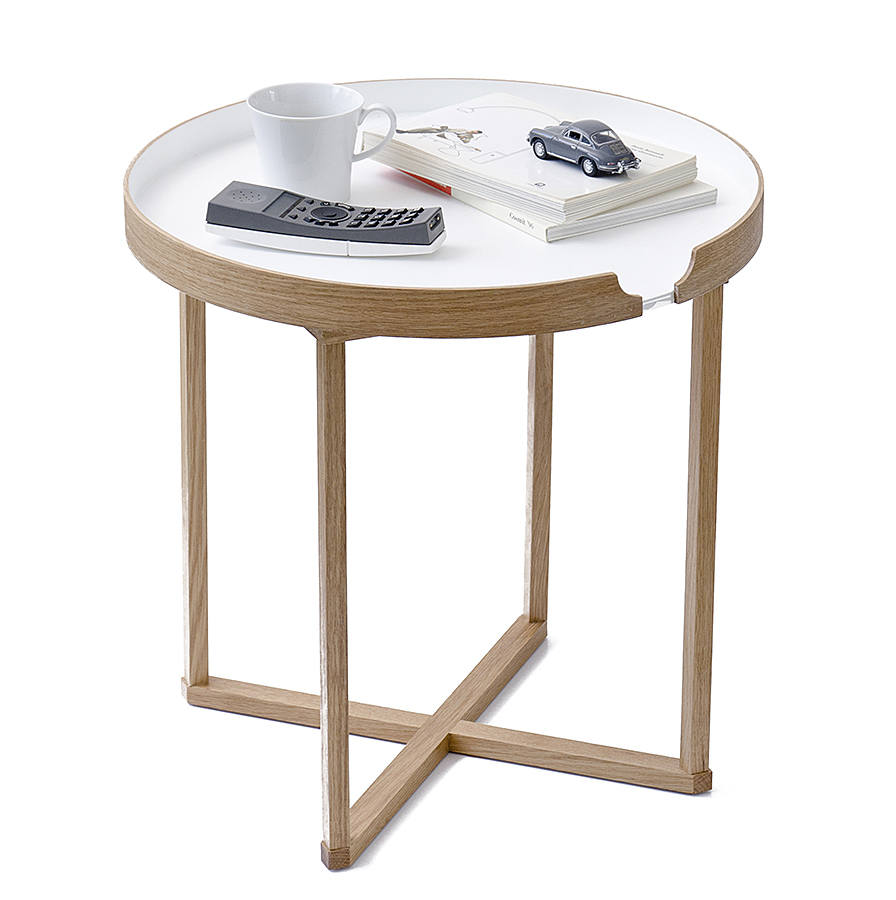 The Damien collection of side tables are fresh, modern designs – ideal for any contemporary home. The frame is made of slim, square section, natural oak – the top are available in oak veneer, white or black. The table tops slot securely into place – but can be easily lifted off to be used as a tray.