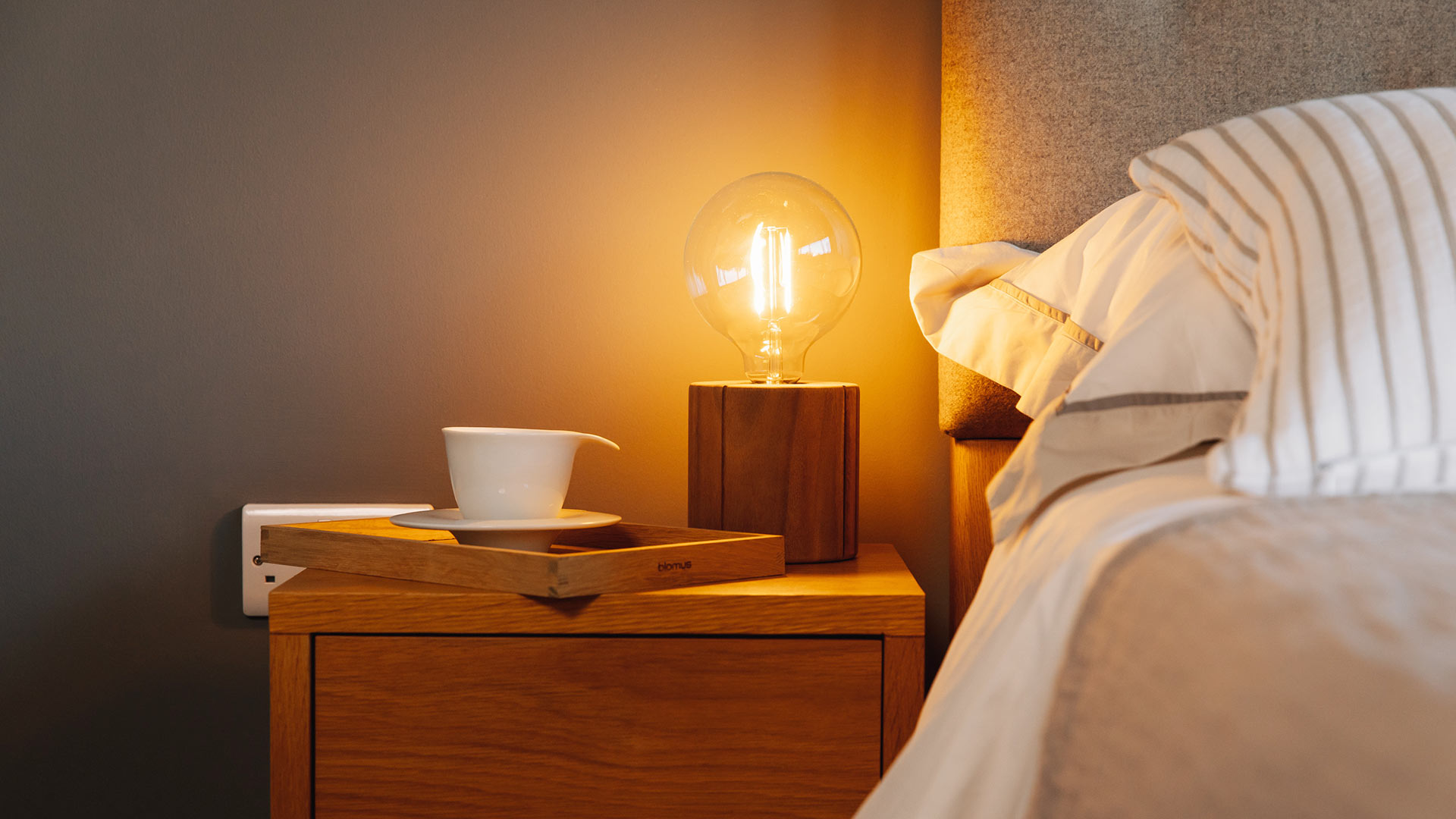 Contemporary wooden bedside lamp holders, add a classic filament look bulb and these stylish lights will add instant warmth to any room. Available in two sizes, solid wood bases decorated with a vertical groove design. These modern wooden bedside lamp holders offer the perfect balance between industrial and rustic.
