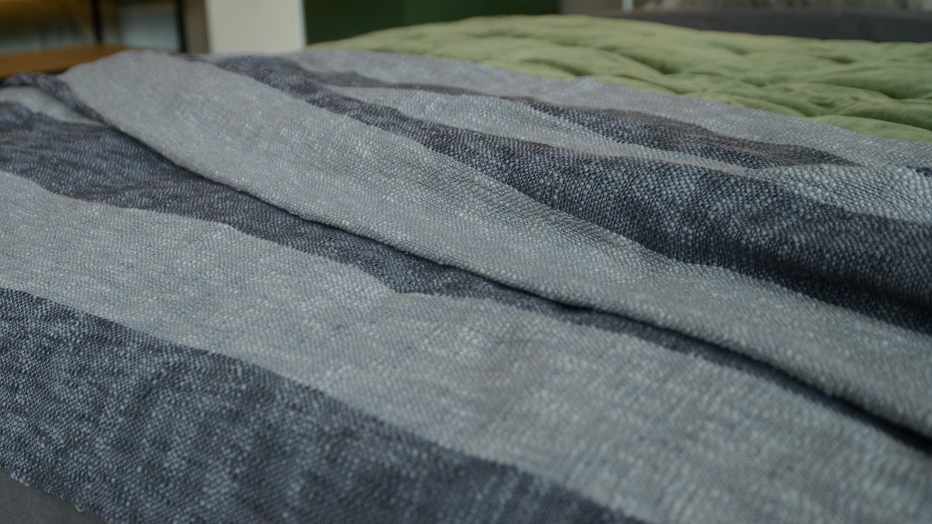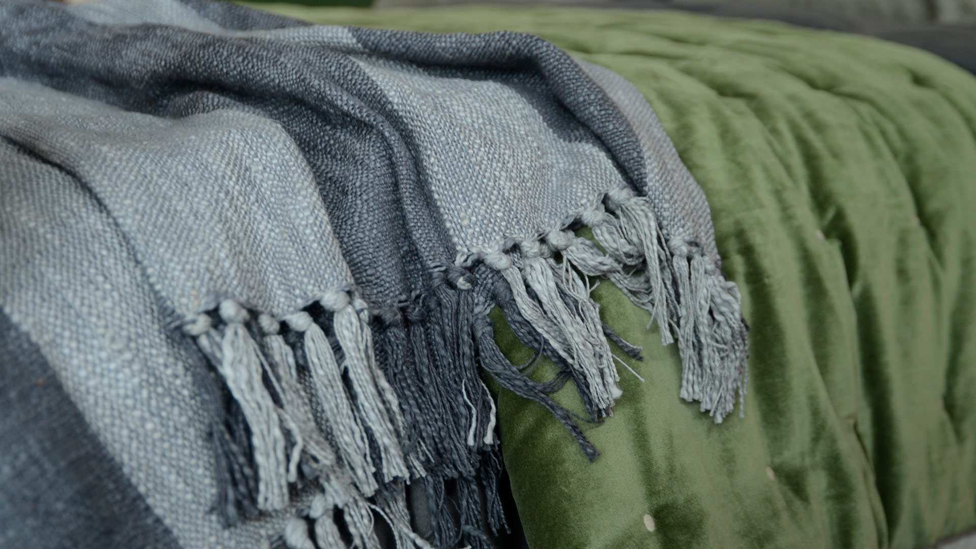A simplistic, modern design, this woven grey stripe throw is an instant classic. Easy to pair with almost any colour scheme thanks to its combination of neutral shades, it’s also the perfect size for draping over the end of the bed or snuggling under on the sofa. Characterised by a bold, lighter grey stripe pattern, and finished with long, matching fringes to two edges. This woven grey stripe throw is ideal for adding a spot of style wherever you need it.